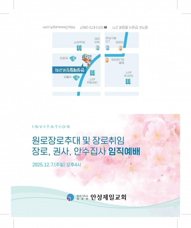 안성제일교회(양신목사 사무) 원로장로추대 및 장로취임, 장로,권사,안수집사 임직예배에 노회원들을 정중히 초대합니다.